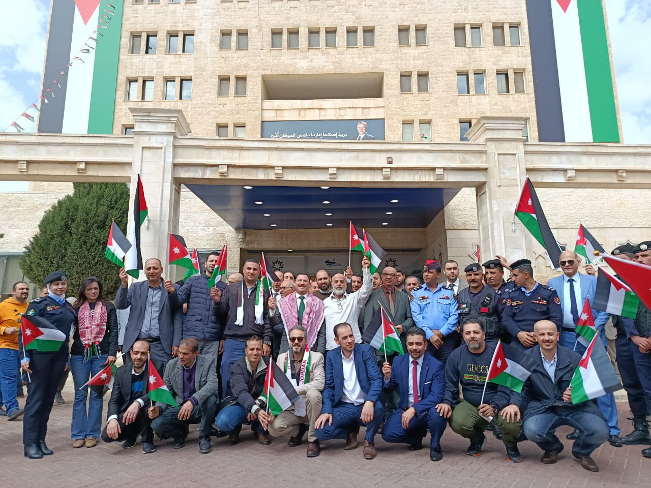 ورفع المشاركون العلم الأردني عاليًا، معبرين عن فخرهم واعتزازهم به بوصفه رمزًا للسيادة الوطنية ووحدة الشعب، ومجددين الولاء للقيادة الهاشمية والانتماء لتراب الأردن الطهور.