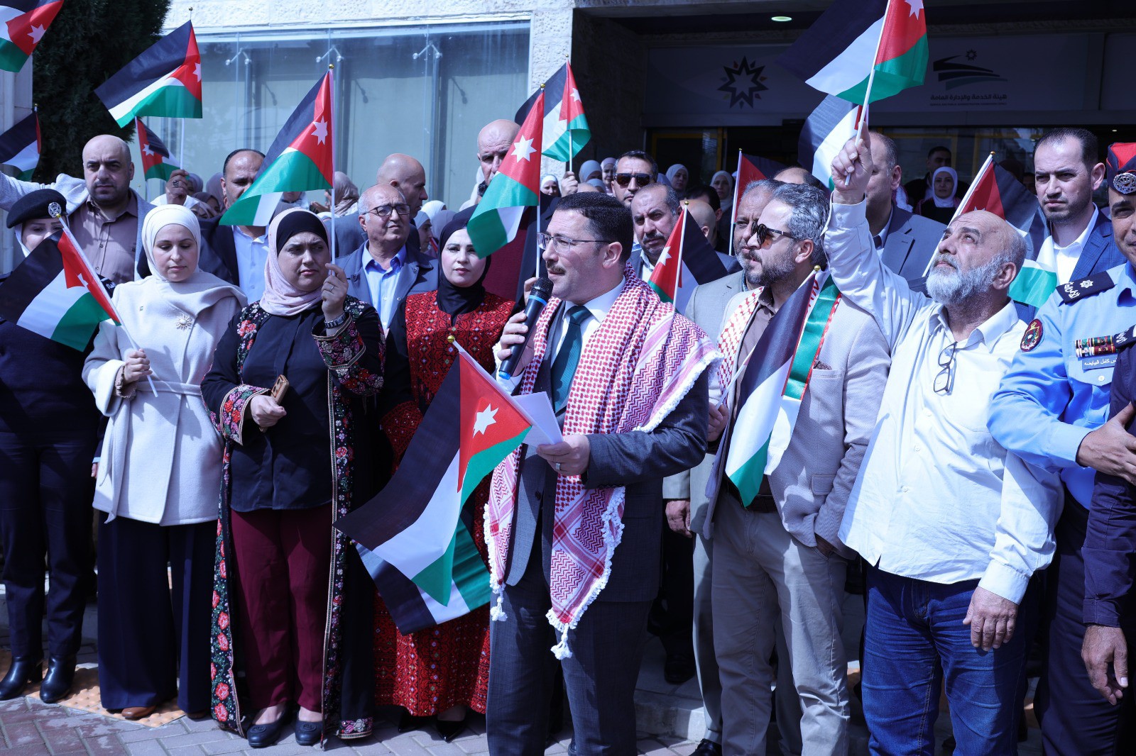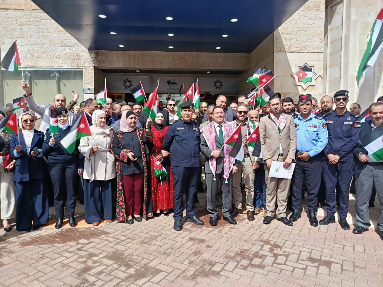 ورفع المشاركون العلم الأردني عاليًا، معبرين عن فخرهم واعتزازهم به بوصفه رمزًا للسيادة الوطنية ووحدة الشعب، ومجددين الولاء للقيادة الهاشمية والانتماء لتراب الأردن الطهور.